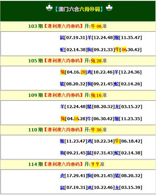 114期-澳利澳十八碼